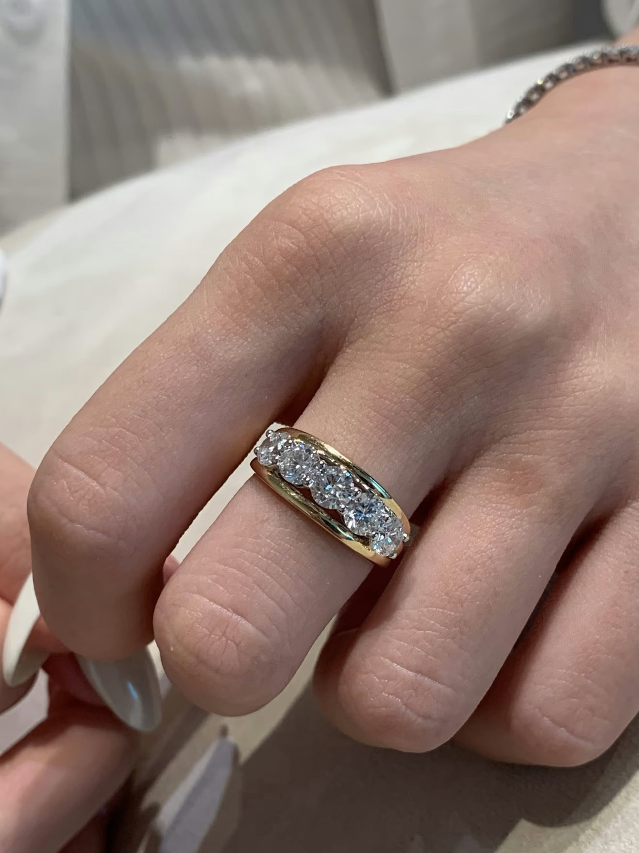 I chose the 1.5ct total diamond version and it looks amazing. The stones are bright and very well set. The band feels solid and high quality. It definitely has that elegant old money look.