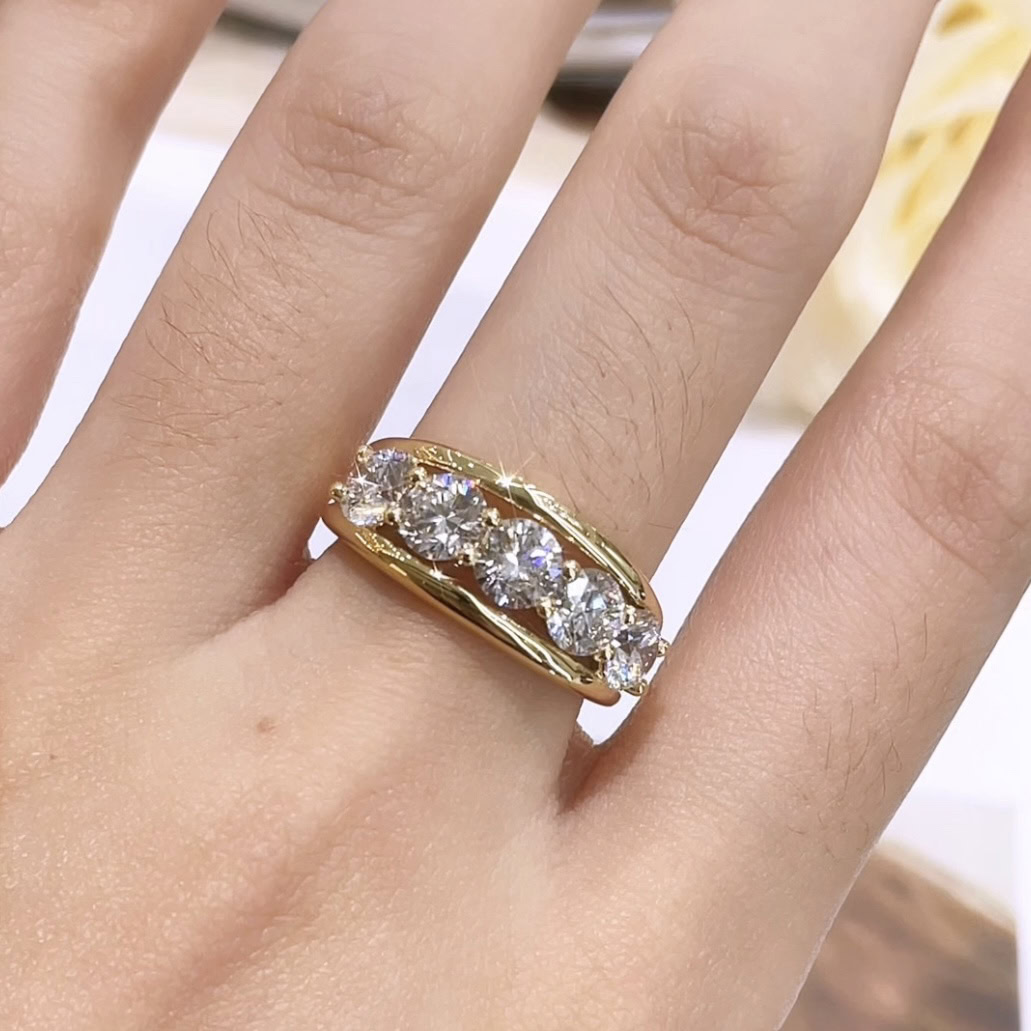 I went with the larger 2.5ct total option and the ring looks stunning. The diamonds are very lively and the vintage style band makes it look like a high end designer piece.