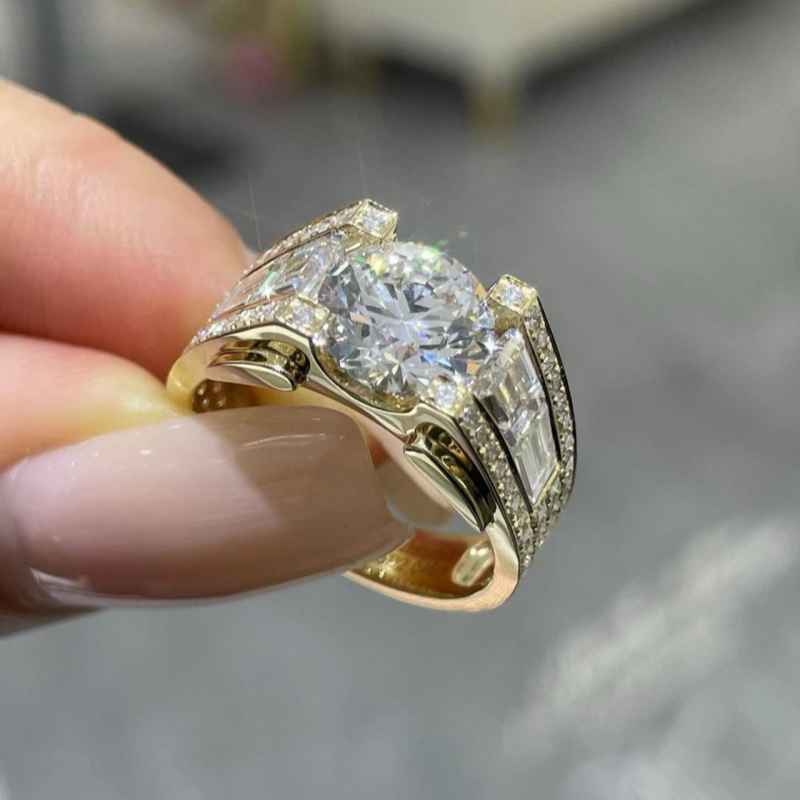 Bold Multi-Stone Lab Diamond Ring – Heavy Gold Statement Design