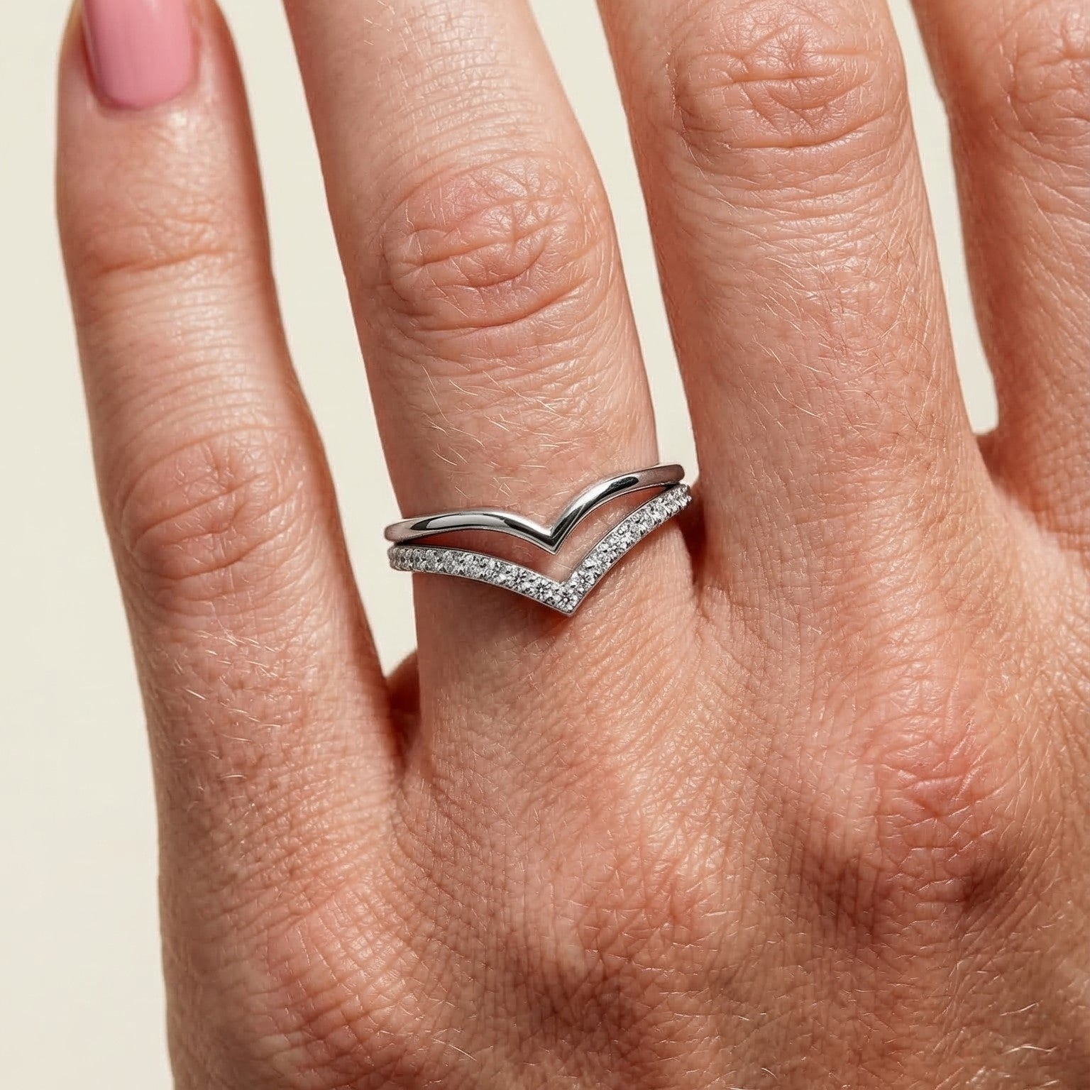 Double Chevron Diamond Wedding Band Lab-Grown Diamond Ring