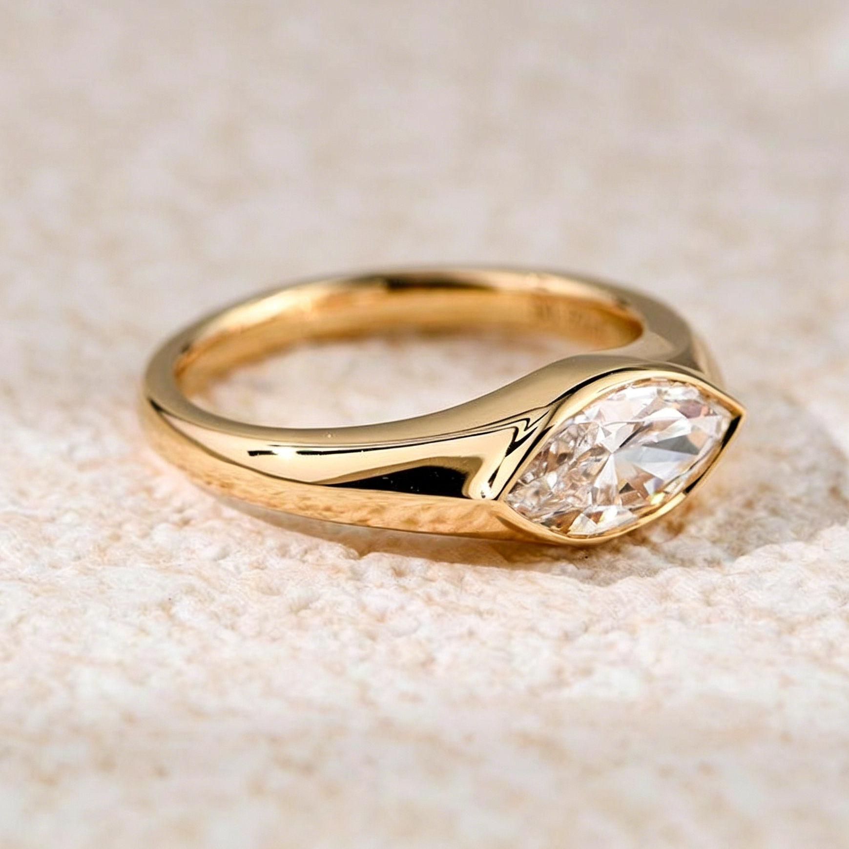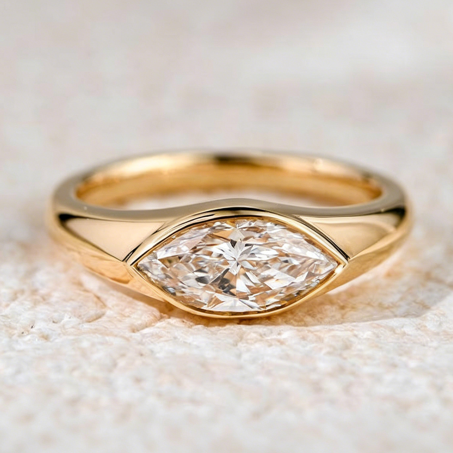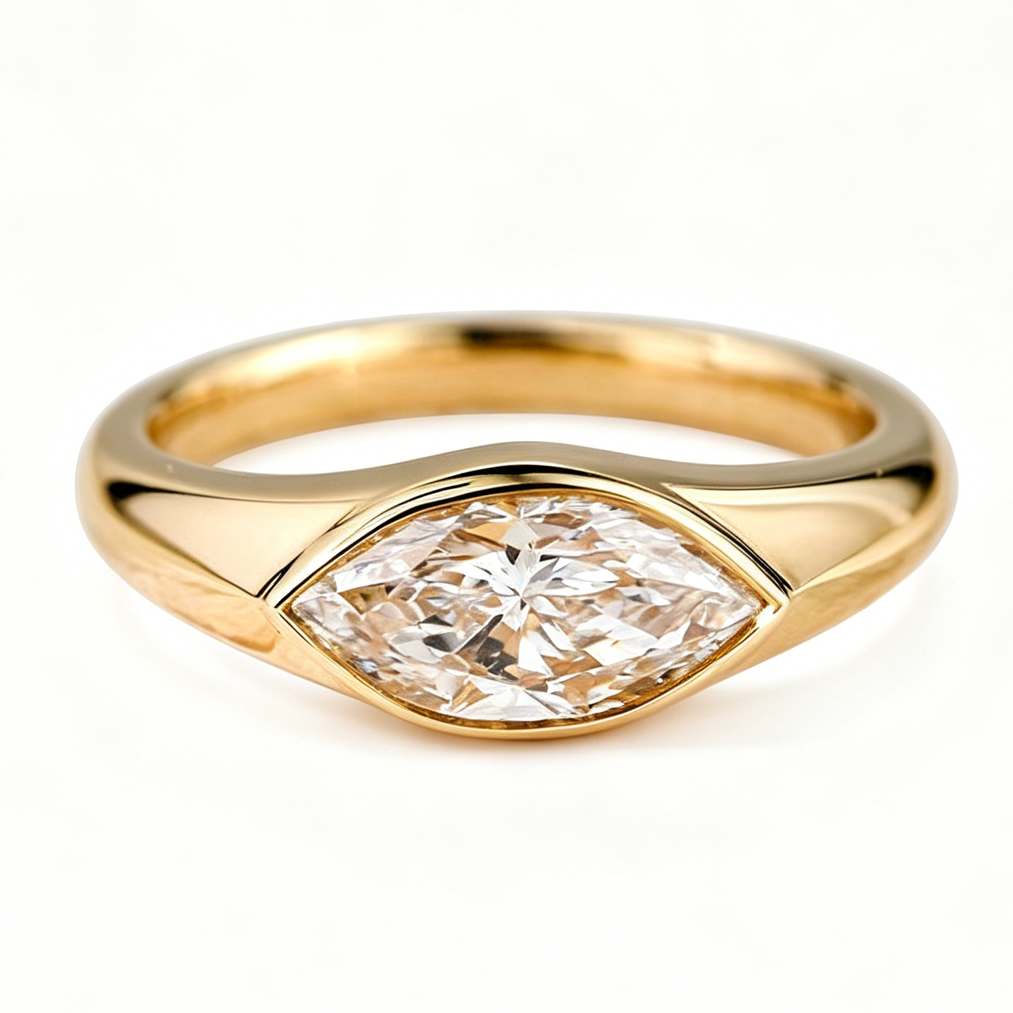 East-West Marquise Lab Diamond Ring – Bezel Set Minimal Gold Ring