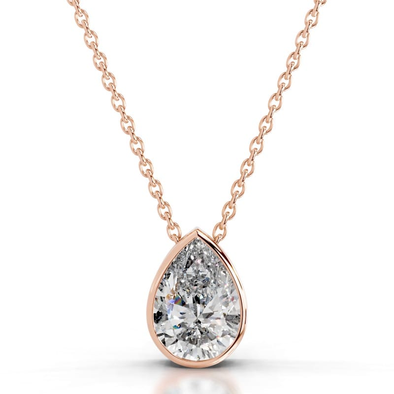 Gianna Pear Solitaire Bezel Necklace Lab Grown Diamond Pendant