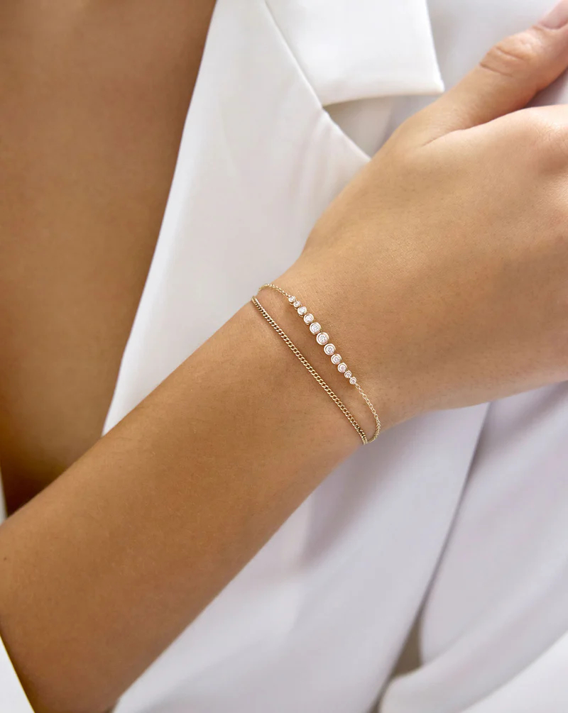 Graduated Diamond Bezel Soft Chain Bracelet Tennis bracelet bubble Adjustable Length