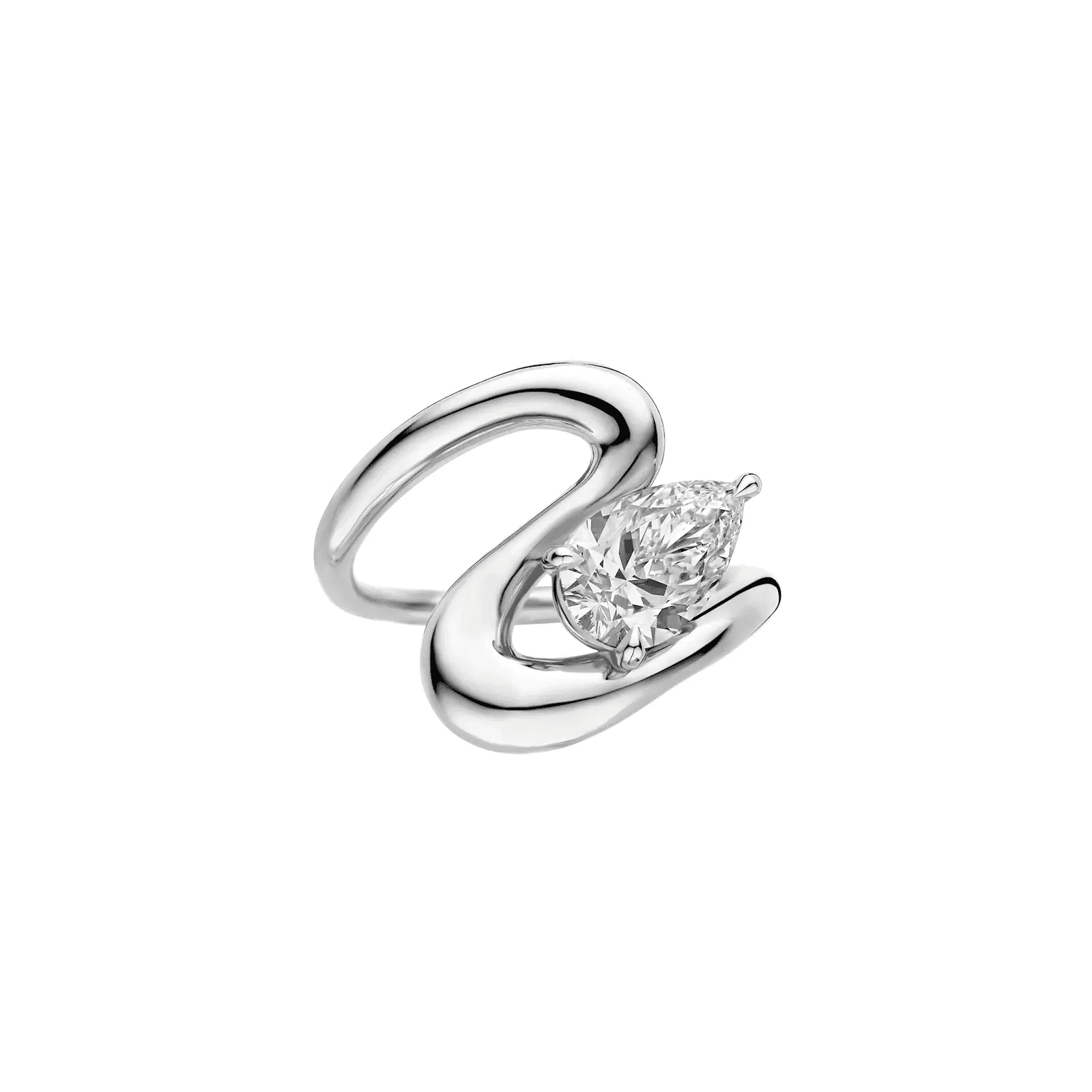An infinity-inspired twist band embraces a pear-cut lab-grown diamond.