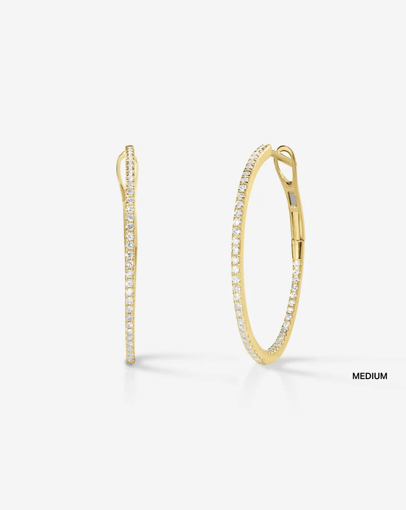 Why We Love Them: Not your average diamond hoops – these are lined with glittering diamonds on both the exterior and interior, ensuring that they catch the light at every angle.
