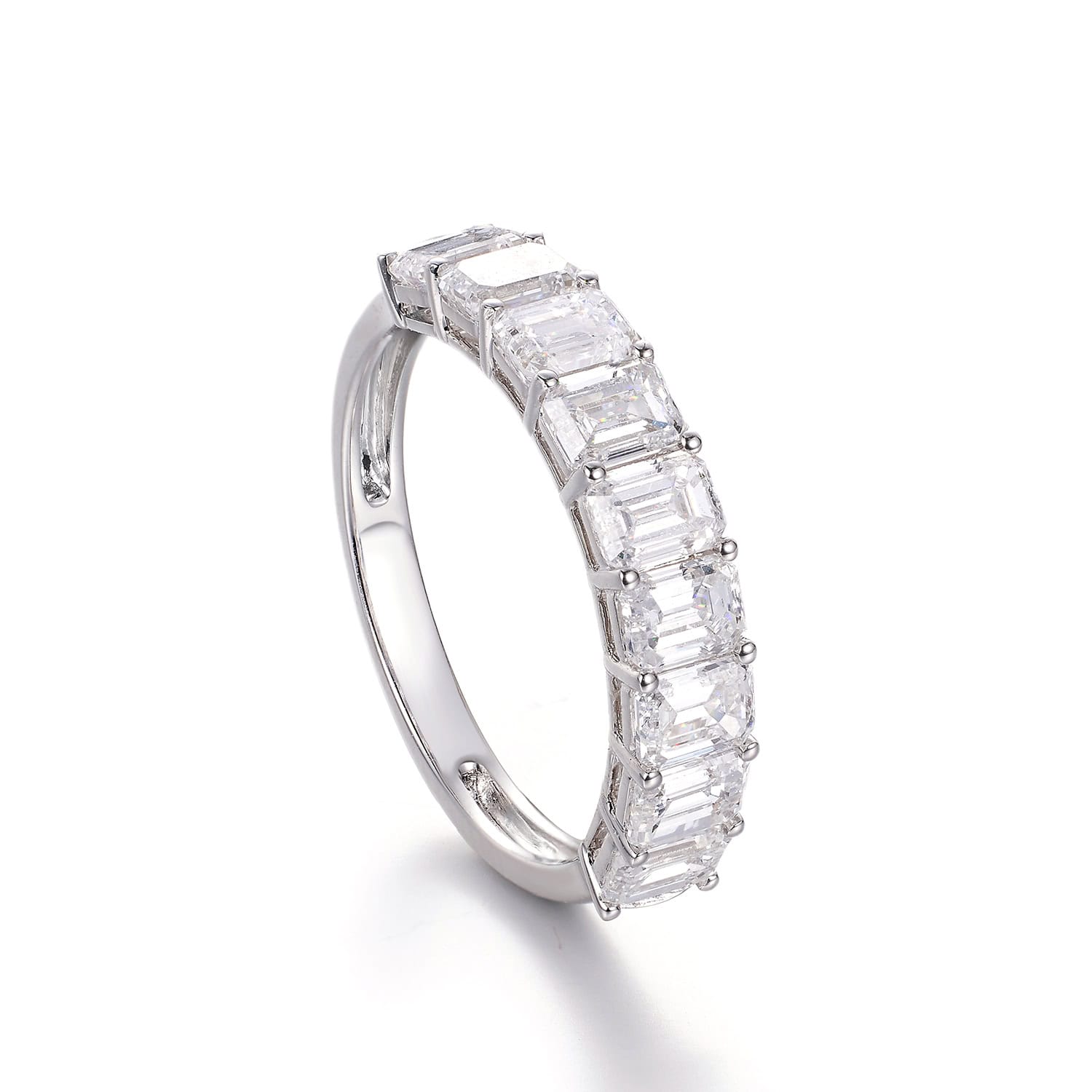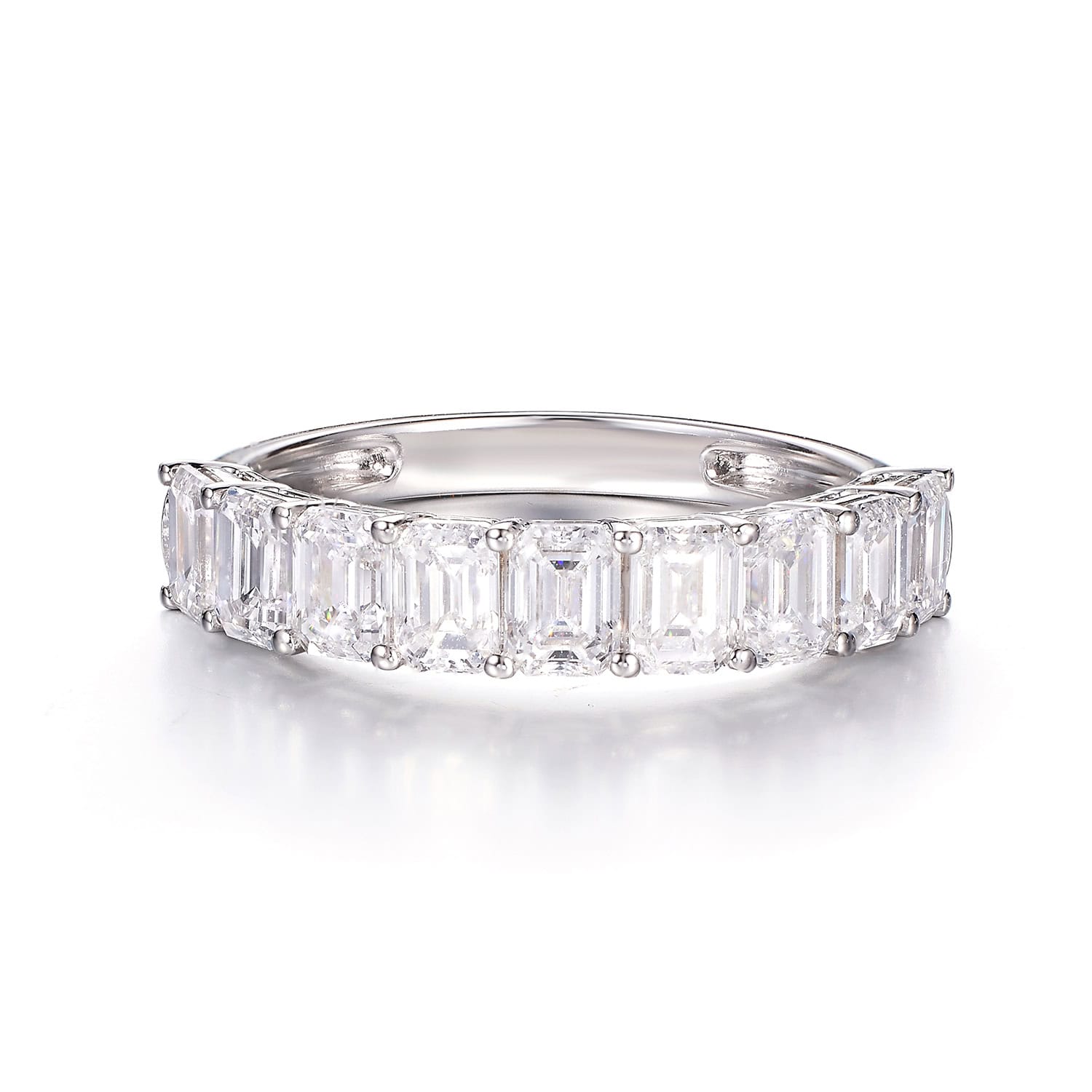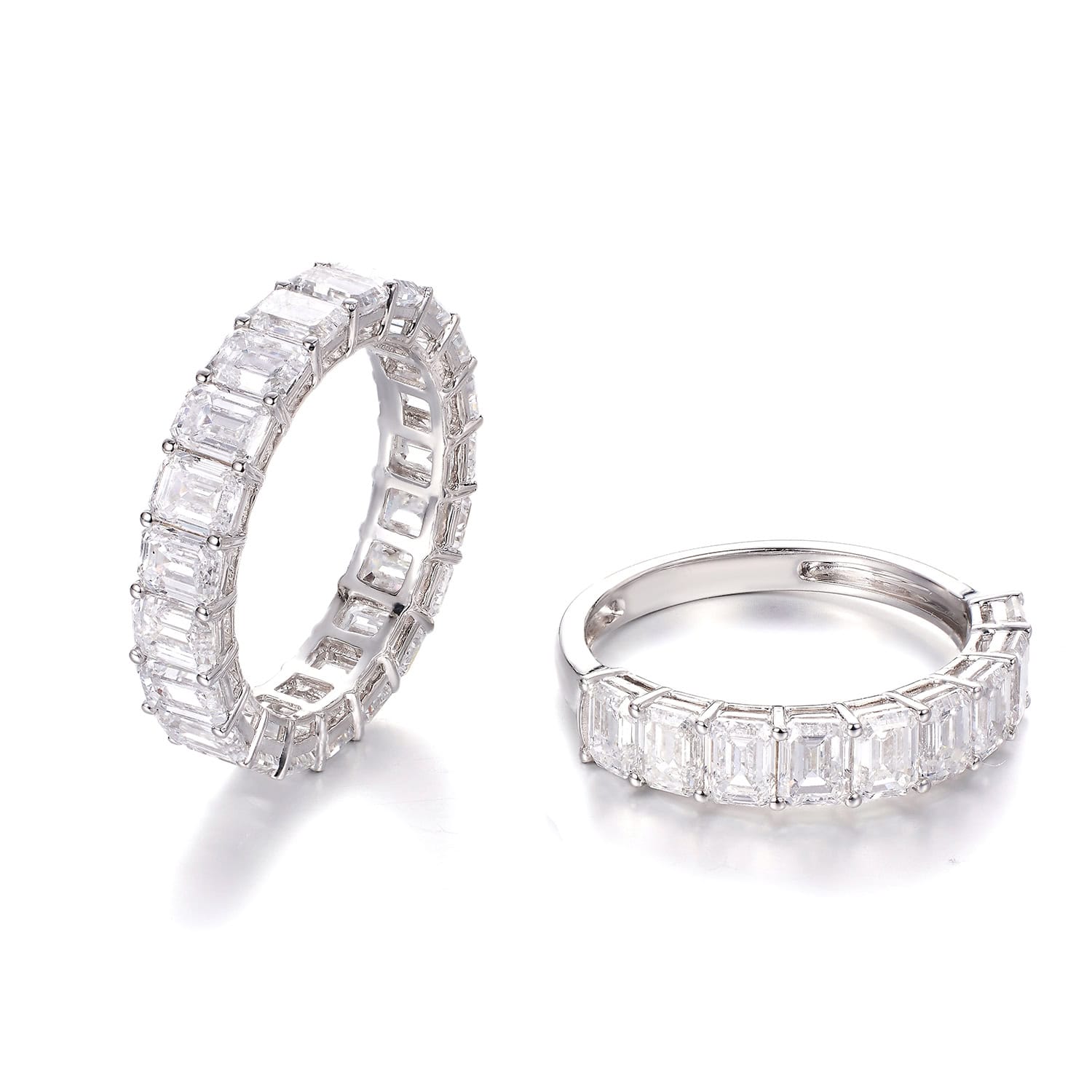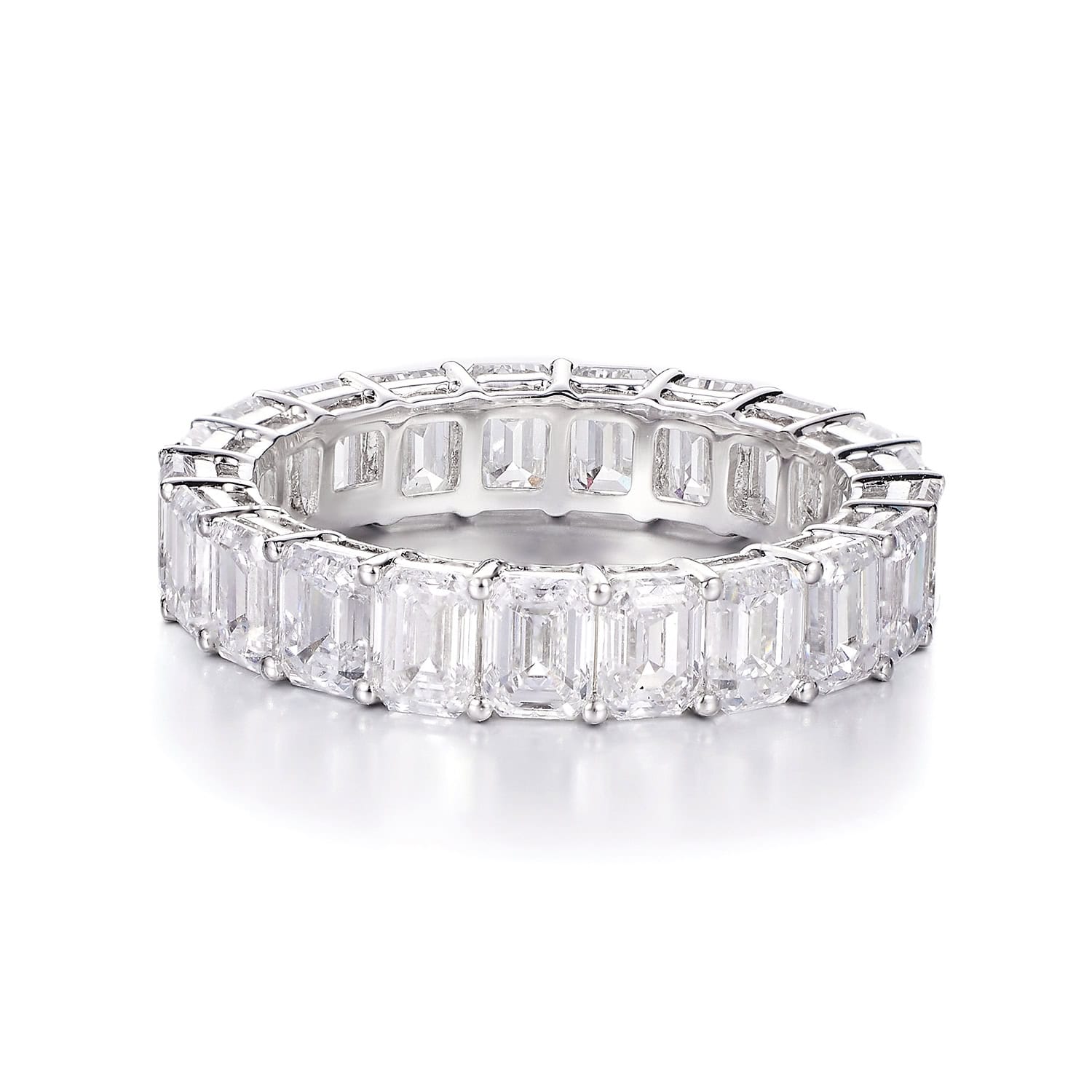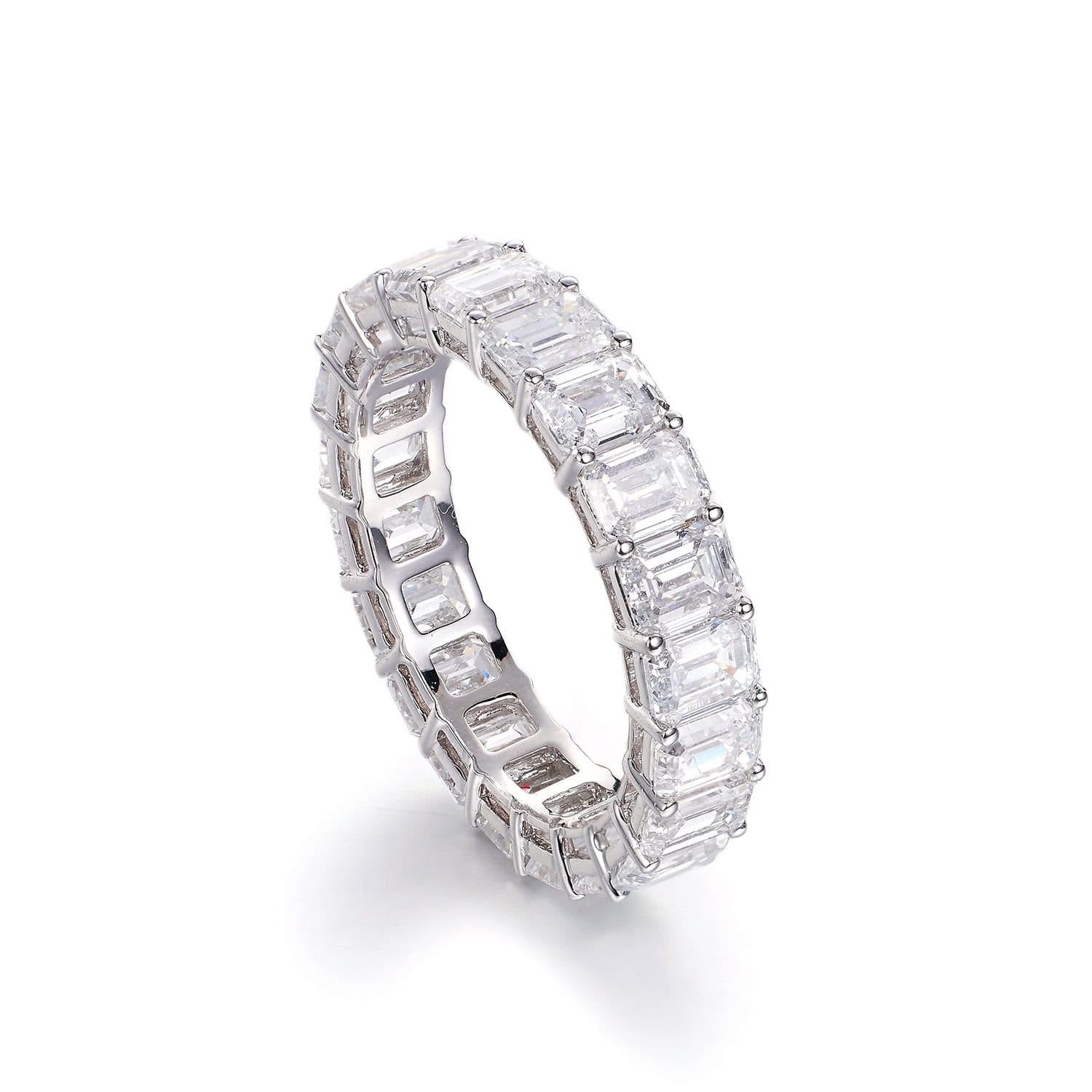 • 0.25ct lab-grown diamonds + emerald cut! More transparent fire than round cuts—an oversized visual feast. The 3D step cut reflects 360° brilliance; it shimmers like a galaxy when you move your finger, making this eternity band feel as lavish as an engagement ring!