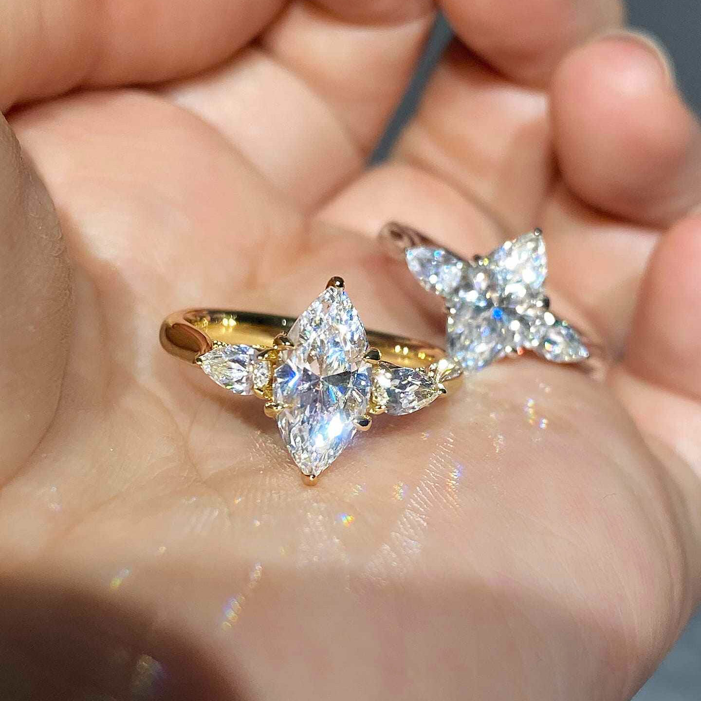 Marquise & Pear Three-Stone Lab Diamond Ring – Minimal Luxury Gold Design