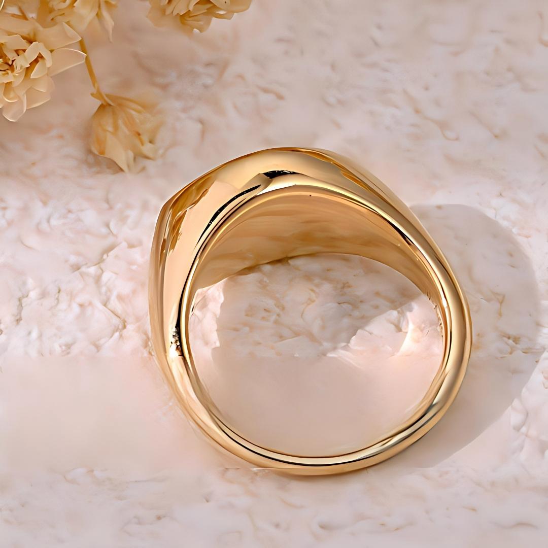 Oval Old Money Style Brushed Gold Wide Band Lab-Grown Diamond Ring