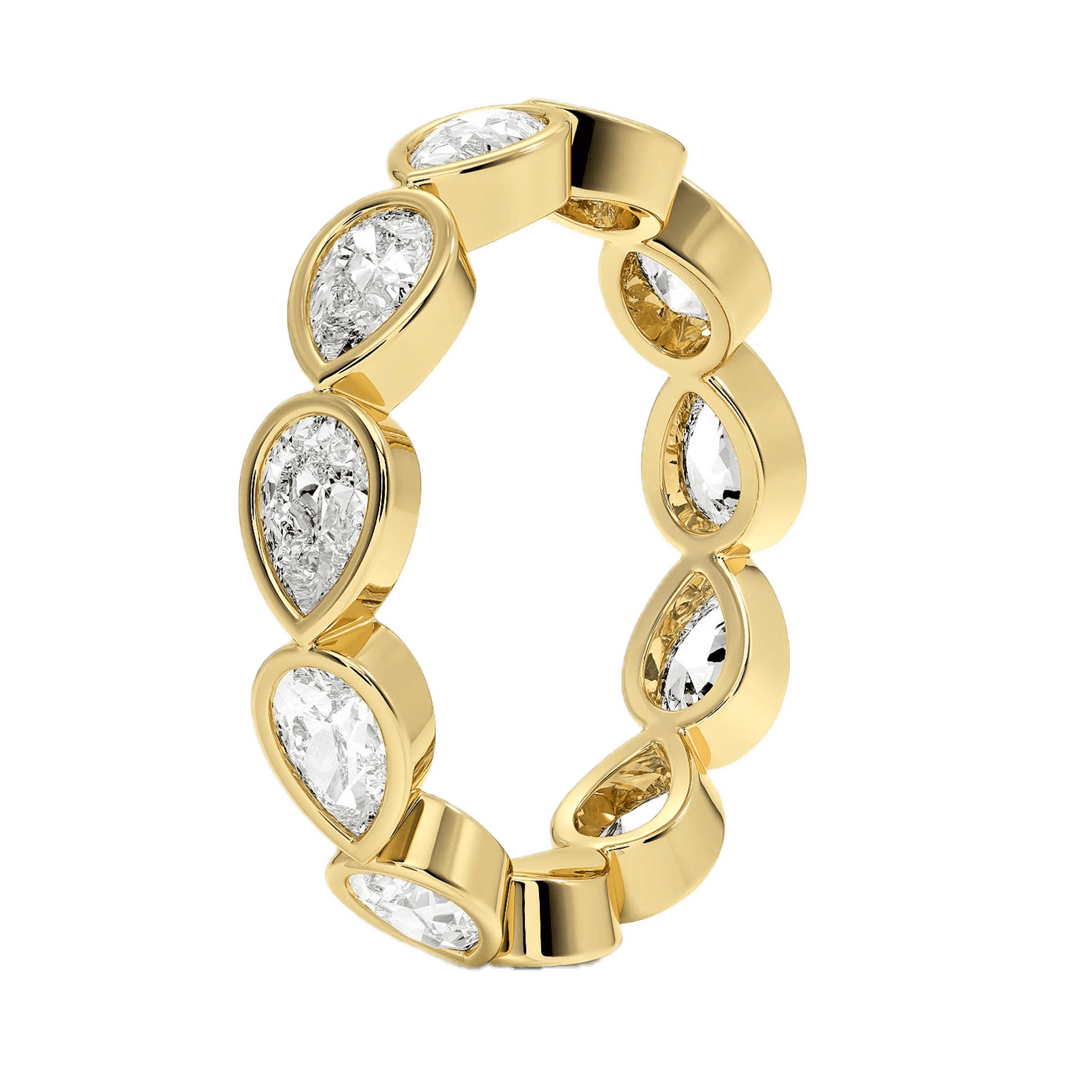 This pear cut lab-grown diamond eternity band features bezel-set stones for sleek brilliance.