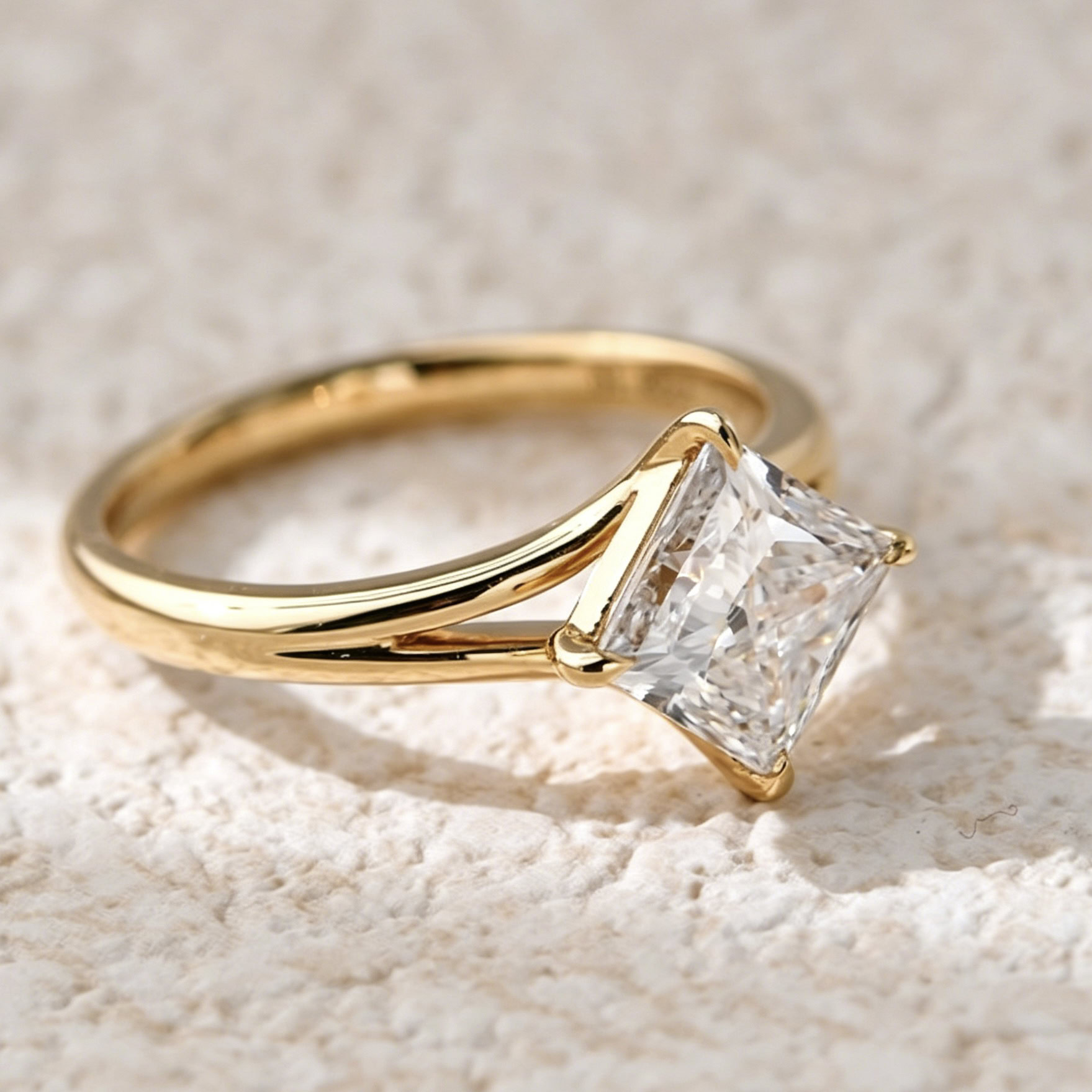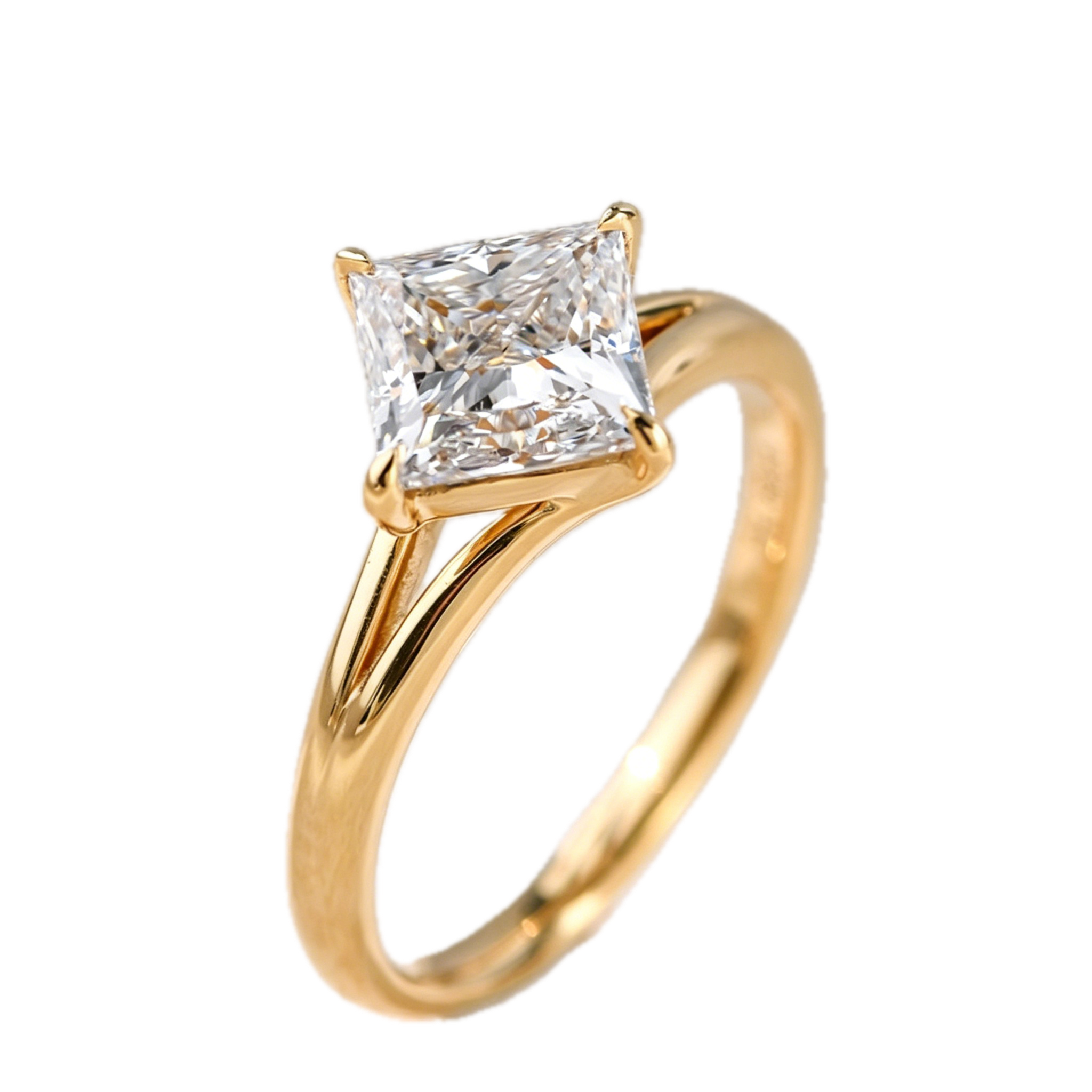 Princess Cut Lab Diamond Ring – Minimal Y-Shank Split Band Design