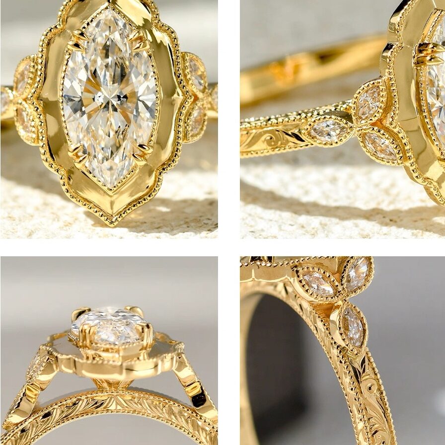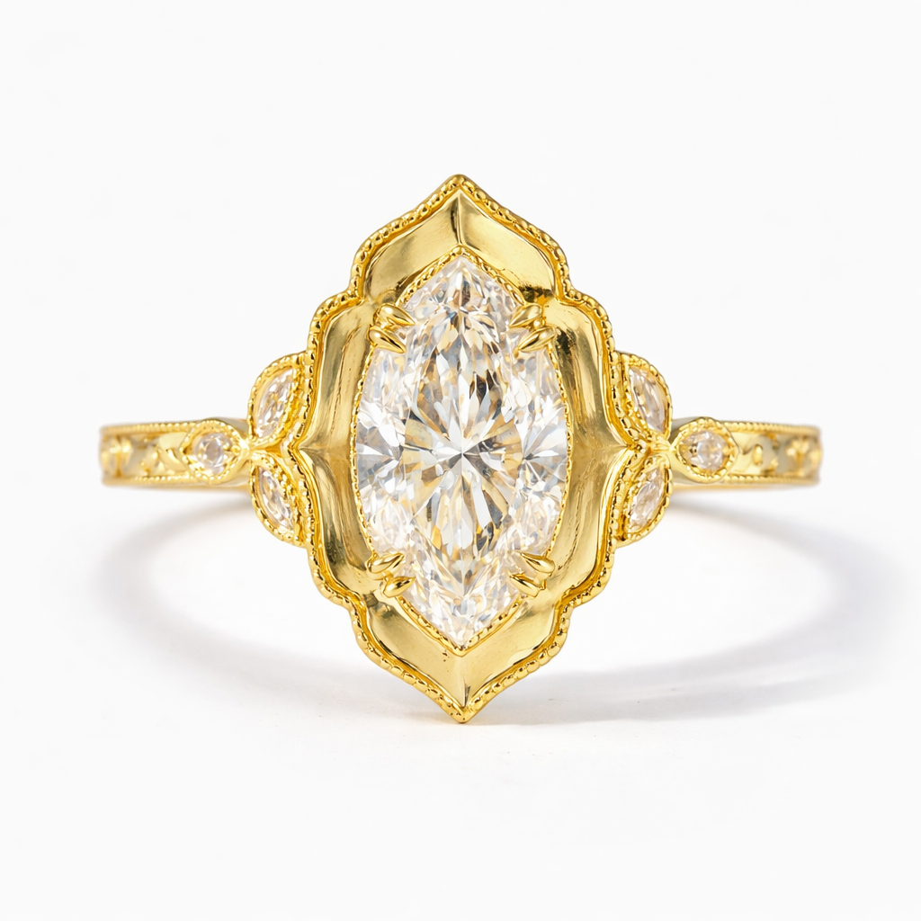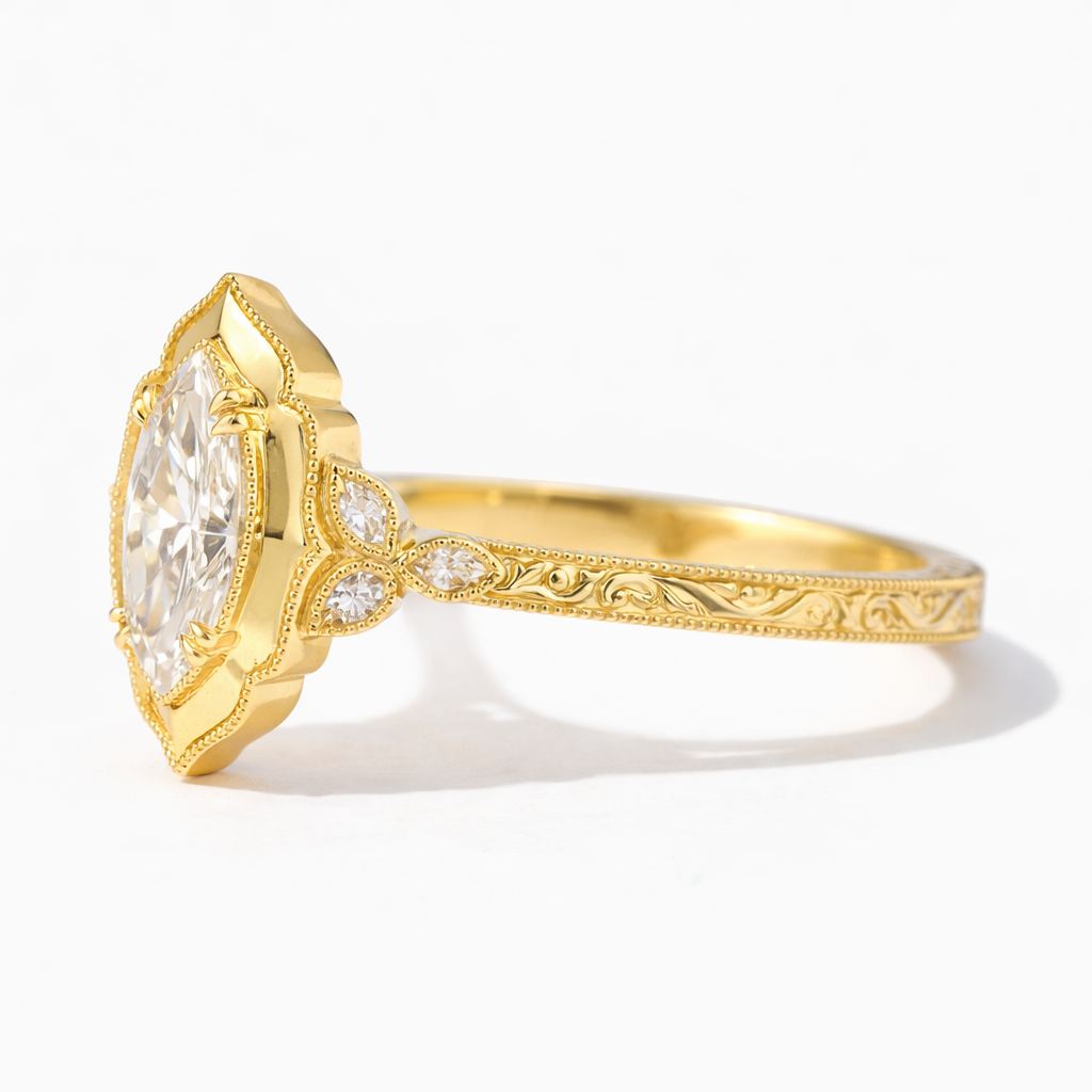 6 reviews for Vintage Marquise Diamond Ring | Victorian Inspired Engraved Royal Style Gold Ring