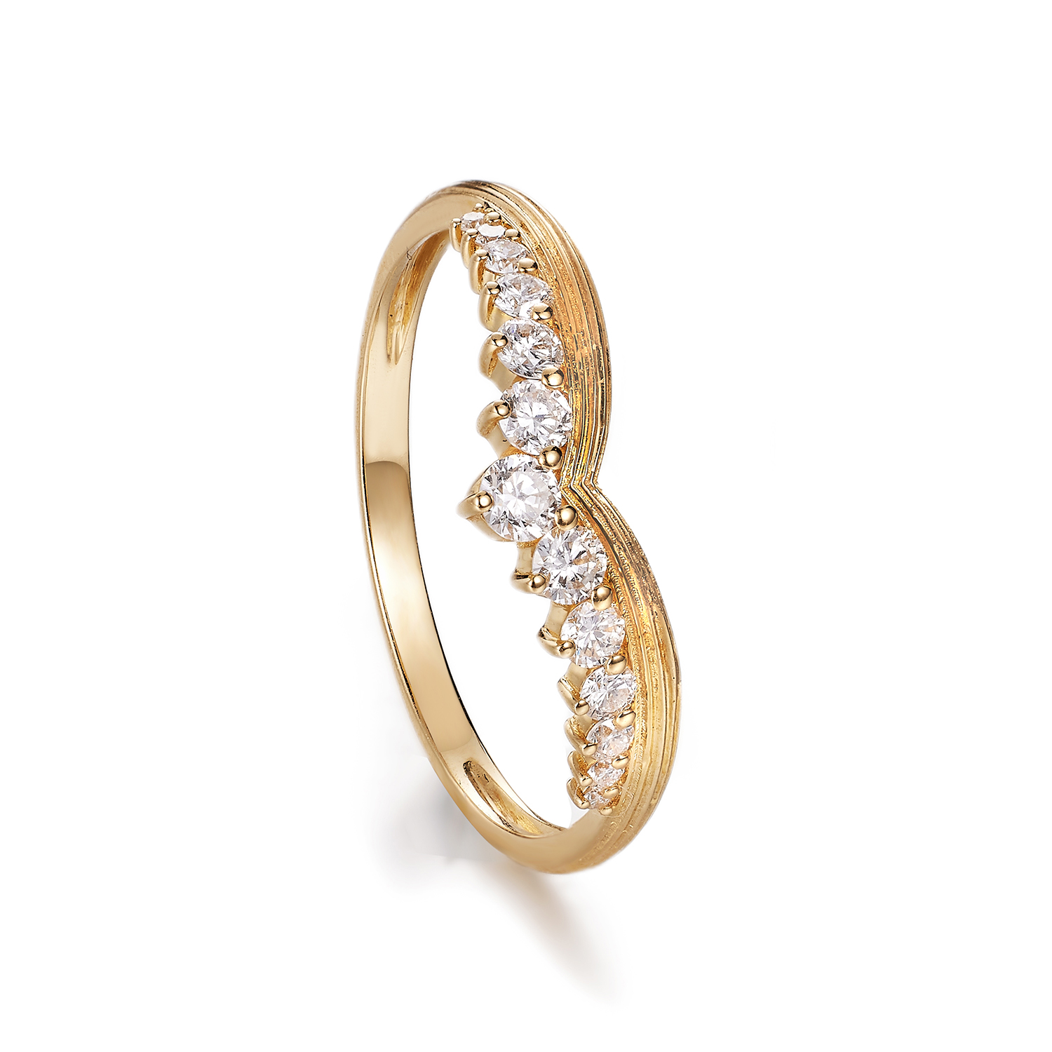 Winged Mini Crown V-Shaped Lab Grown Diamond Ring Gold Stackable Wedding Band